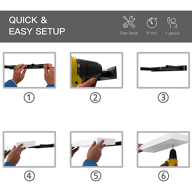 9.3″D x 23.6″W x 1.5″H. Contains 2 shelves, provide plenty of capacity for storage and freedom combination. With a wider design that is suitable for books or basket.Enhanced metal brackets matched with precise screws ensure that no lean or sag during long-term placement. Each premium engineered wood shelves can hold up to 30lbs.Perfect choice for organizing toiletries, makeup, shampoo, conditioner, shower toilet paper, towel in your restroom. Storaging spices, pot, jars, coffee mug, cans, seasoning bottles in kitchen.As a display shelf put succulent plants, collectibles small items. Fill in empty wall space above a desk, fireplace, entryway, vanity, between windows.