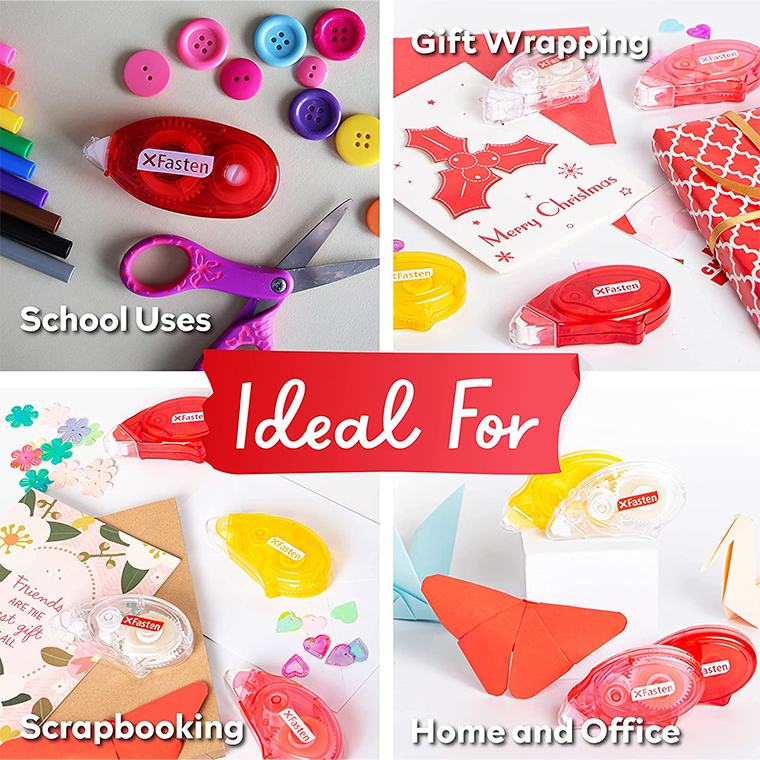 The multicolor double sided tape adhesive roller is safe to use in important documents and archiving significant photos for longer periods without damaging their surface. It doesn’t turn yellow, dry out, or become gooey over time. Ideal double stick tape for scrapbooking, photos, and card making.Eliminate the waiting time when using this glue tape for scrapbooking with dispenser. It dries quickly, so you don’t have to worry about longer processing time.Using the repositionable adhesive tape provides clean and even adhesion to papers, photos, gift wrappers, and other projects.Equipped with a smooth and jam-free glue adhesive dots dispenser that dispenses adhesive quickly and easily without getting stuck.